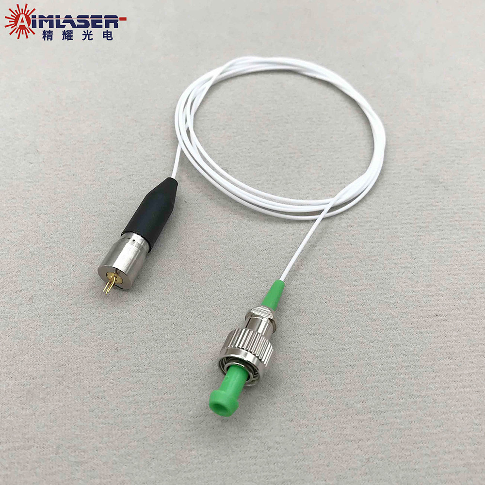 AIMLASER biedt op maat gemaakte single mode en multi mode fibergekoppelde laserdiode modules. Ze staan ook bekend als pigtailed fiber lasers of fiber-met-pigtail laserbronnen. Aanpasbare golflengtes zoals 405nm, 450nm, 520nm, 635nm, 650nm, 780nm, 850nm, 980nm en 1064nm, met een uitgangsvermogen variërend van 1mW tot 500mW. De singlemode pigtailed laserdiode's vezelkern kan 3,5µm, 4µm, 6,5µm of 9µm zijn. De multimode fibergekoppelde laserdiode's vezelkern kan 50µm, 62,5µm, 105µm, 125µm, 170µm of 200µm zijn, met FC, PC, ST of SMA905 connectoren en verschillende vezellengtes.