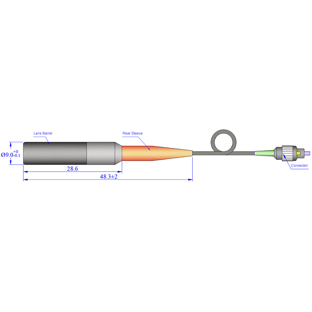 De Asferische Lenzen Collimator met Vezel heeft een compact ontwerp met een schuine vezelstaart en een nauwkeurig afgestelde asferische lens, wat zorgt voor een hoge Gaussian straalkwaliteit en uitstekende collimatie-eigenschappen. Zowel de lens- als de vezeloppervlakken zijn gecoat met anti-reflectiecoatings, waardoor de terugreflectie aan de uitgangsopening aanzienlijk wordt verminderd en optische linkruis wordt geminimaliseerd.
